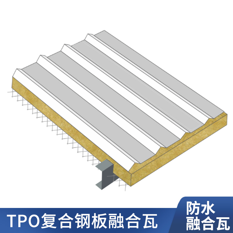 TPO/PVC鋼塑復合防水瓦以鋼板為基板,表面貼覆具有防水防腐功能的TPO/PVC卷材(熱塑性聚烯烴類防水卷材),是一款防水防腐屋面建筑材料。TPO/PVC鋼塑復合防水瓦主要特點就是在各類環境下不易生銹不易漏水,使用熱風焊接進行相連,覆蓋全部裸露的縫隙,在使用過程中可以達到蓄水不滲透的效果,防水效果好,同時還有較好的抗風揭性能和耐老化性